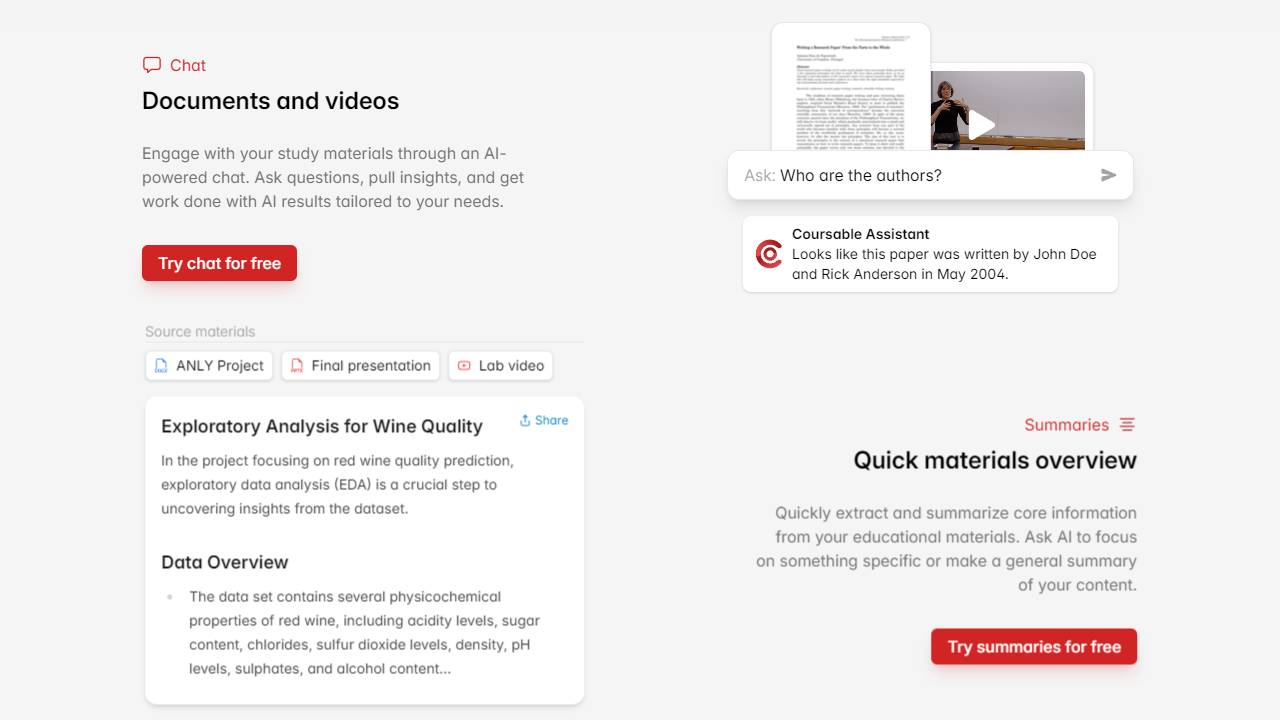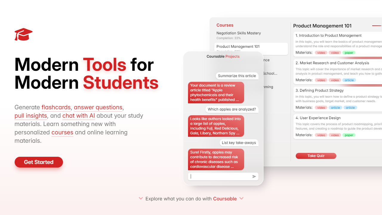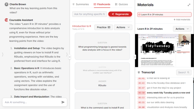 Ask Coursable questions about your Flashcards and Quizzes 📎